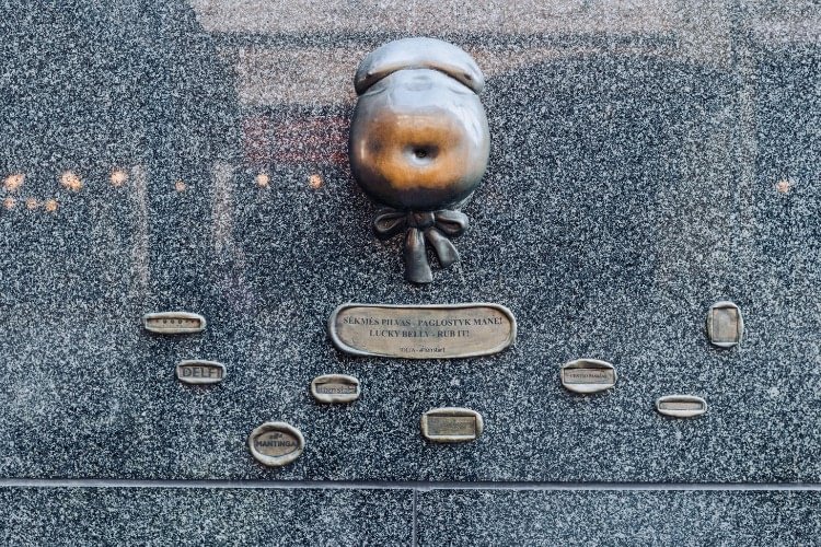 Norite prisivilioti sėkmę? Vilniaus gatvėje dairykitės 40 cm. skersmens skulptoriaus Romo Kvinto ir architekto Alvydo Songailos bronzos bareljefo „Sėkmės pilvas“. Kūrinys dedikuotas visiems, besidairantiems sėkmės.